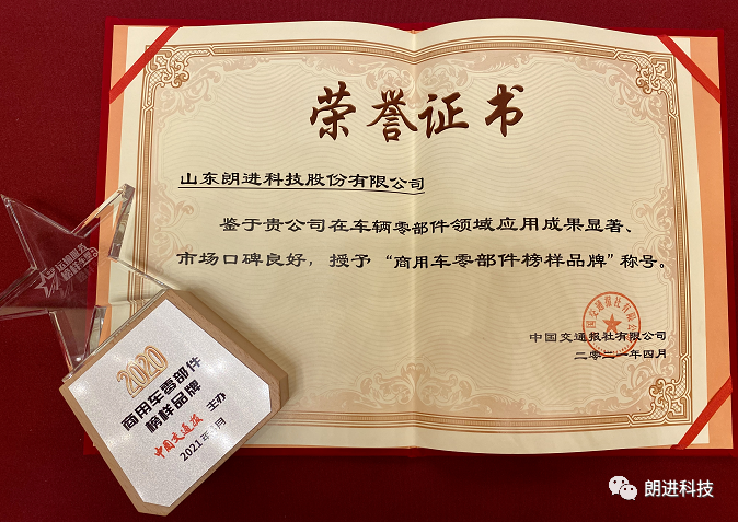 朗进科技荣获“商用车零部件榜样品牌”称号