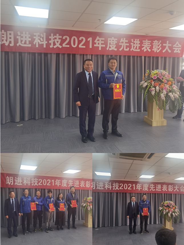 下午两点,大会在公司领导和全体员工的热烈掌声中拉开帷幕。会议伊始,主持人首先宣读了2021年度也是朗进科技第一届技术进步奖获得名单和课题创新点,并由公司领导进行了授奖,紧随其后的是对公司级“朗进风范奖”、“朗进八杰”、“杰出部门”、“杰出班组”以及“杰出项目组”获奖名单和优秀事迹的表彰,颁奖仪式结束之后,软件事业部李尚松和采购部王迎分别作为技术进步奖获得者代表和公司先进代表进行了精彩发言。