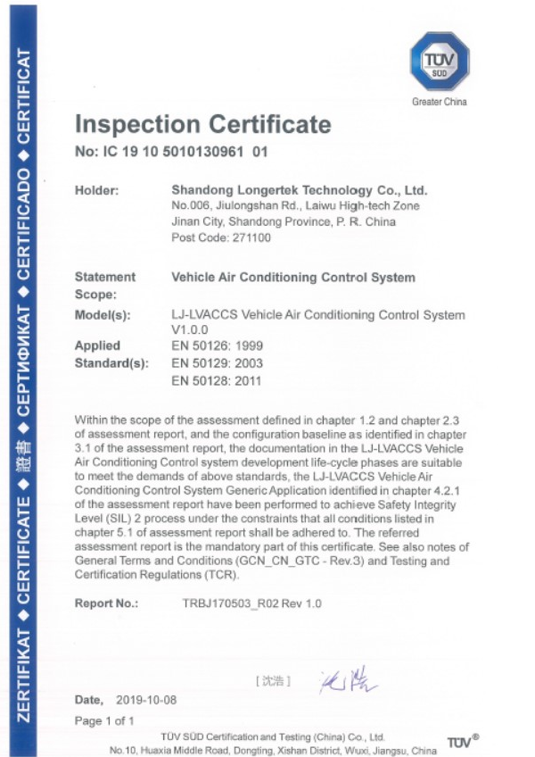 此次SIL2认证工作的开展在国内轨道空调企业尚属首次,其顺利通过是开云足球轨道空调产品功能安全可靠性的又一权威证明,奠定了公司在轨道空调行业中的领先地位,同时也为公司后续提供更加安全成熟可靠的空调产品提供了保障。