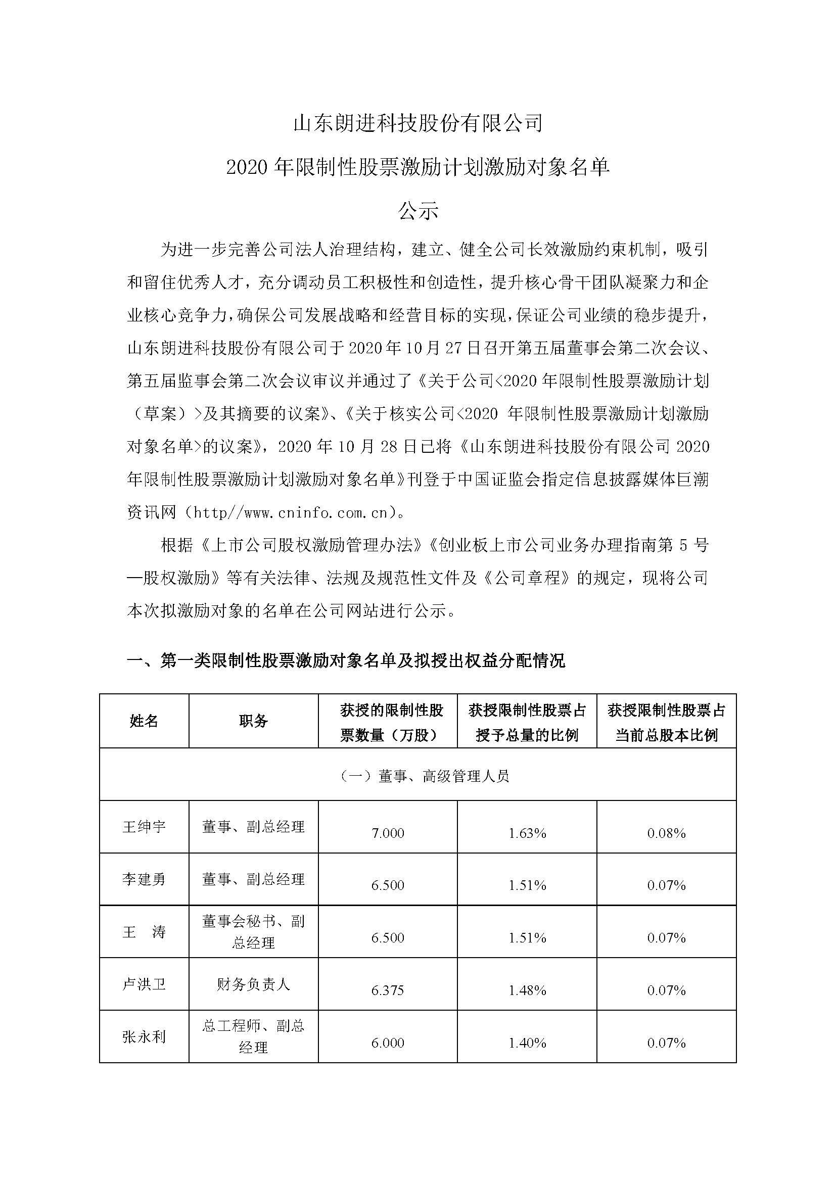 开云足球2020年限制性股票激励计划激励对象名单公示