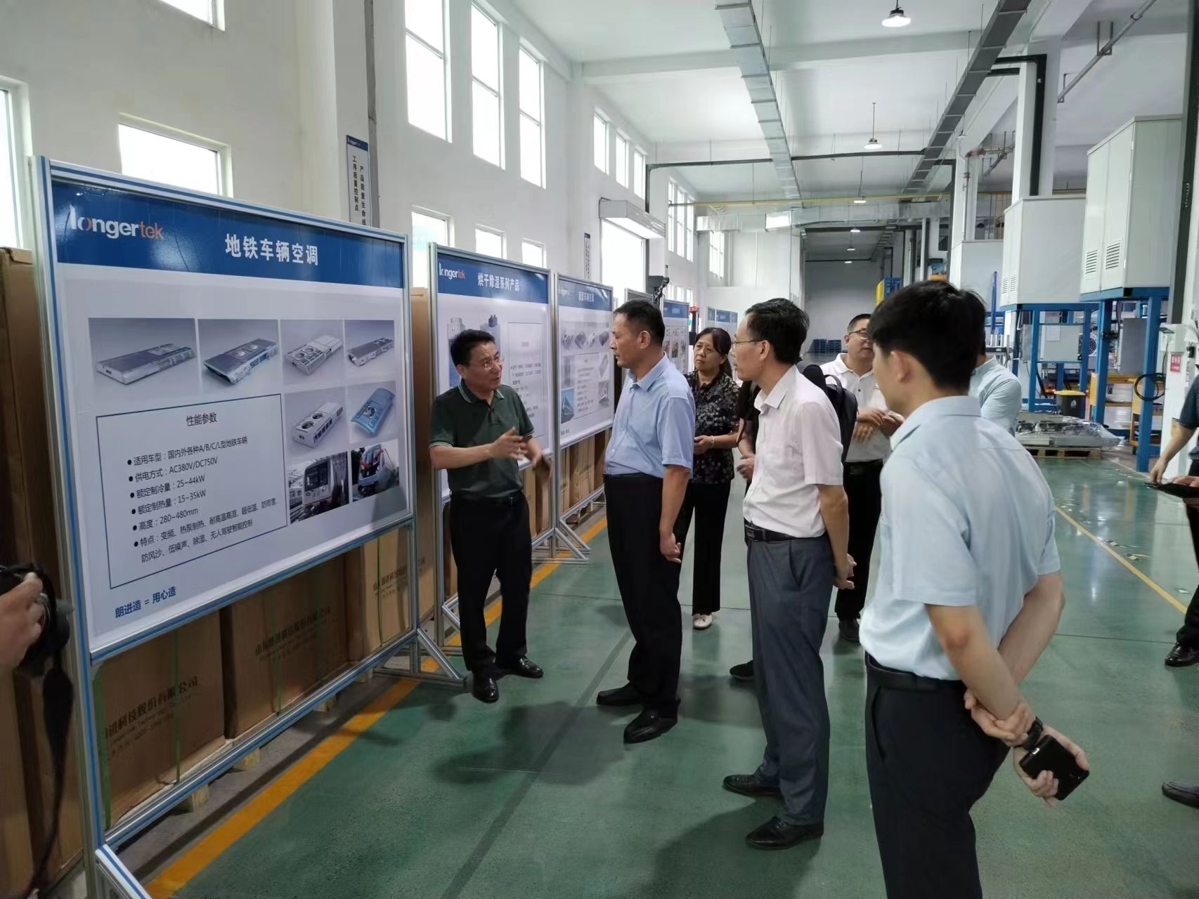 2023年7月13日济南市科技局“科技成果直通车”活动在济南市莱芜高创中心举行,市科技局成果转化及产业化处处长张根生,齐鲁工业大学(山东省科学院)科技合作与成果转化处处长刘贞先,齐鲁工业大学(山东省科学院)研究员李昱,活动期间相关活动领导来到朗进科技济南工业园调研科技创新工作情况,并推进产学研合作等相关事宜。莱芜区科技局长陶务杰、朗进科技总经理李敬恩等相关领导陪同调研。