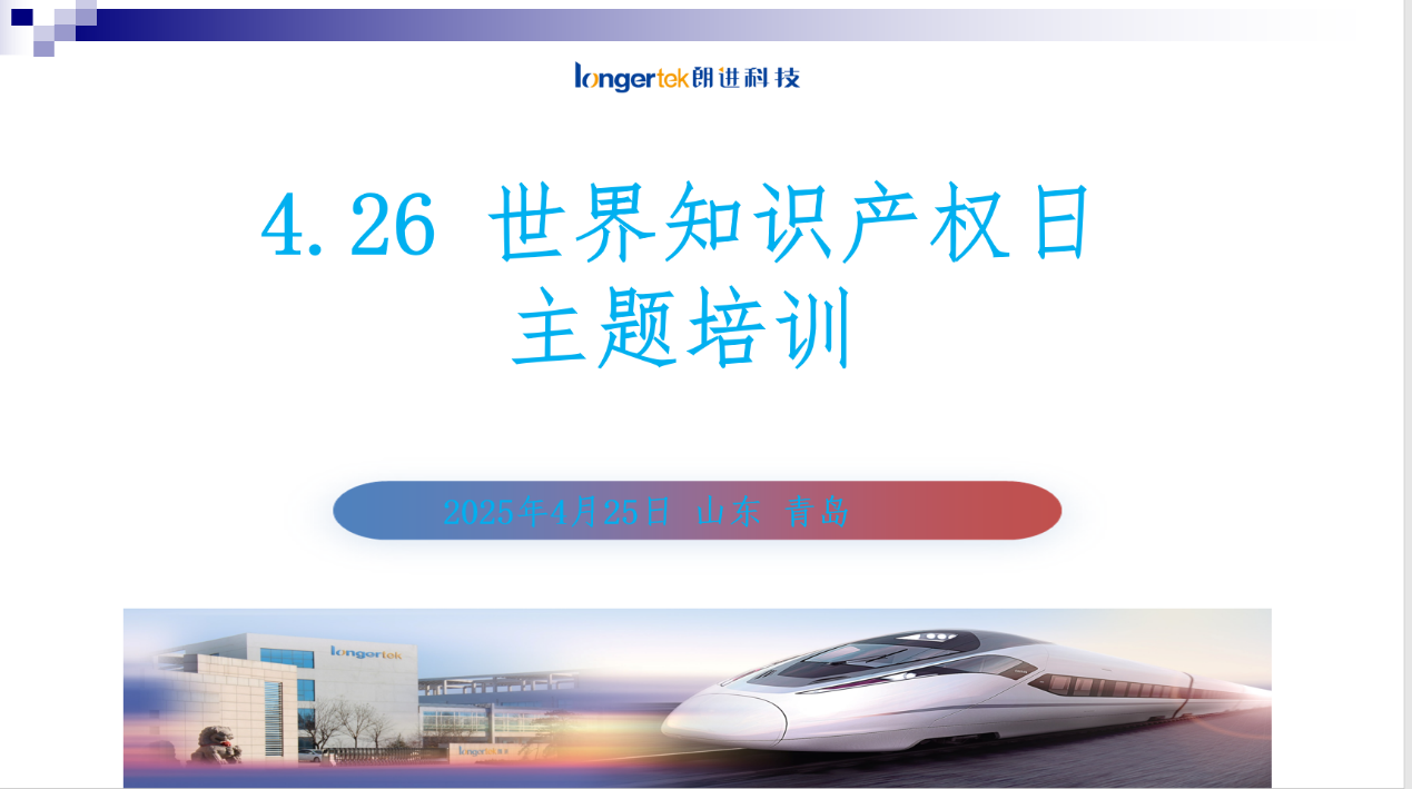 2025年4月26日是第二十五个“世界知识产权日”,为全面提升员工知识产权保护意识,牢筑知识产权风险防线,为企业稳定发展提供知识产权战略支撑,朗进科技开展了“426世界知识产权日”主题培训活动。